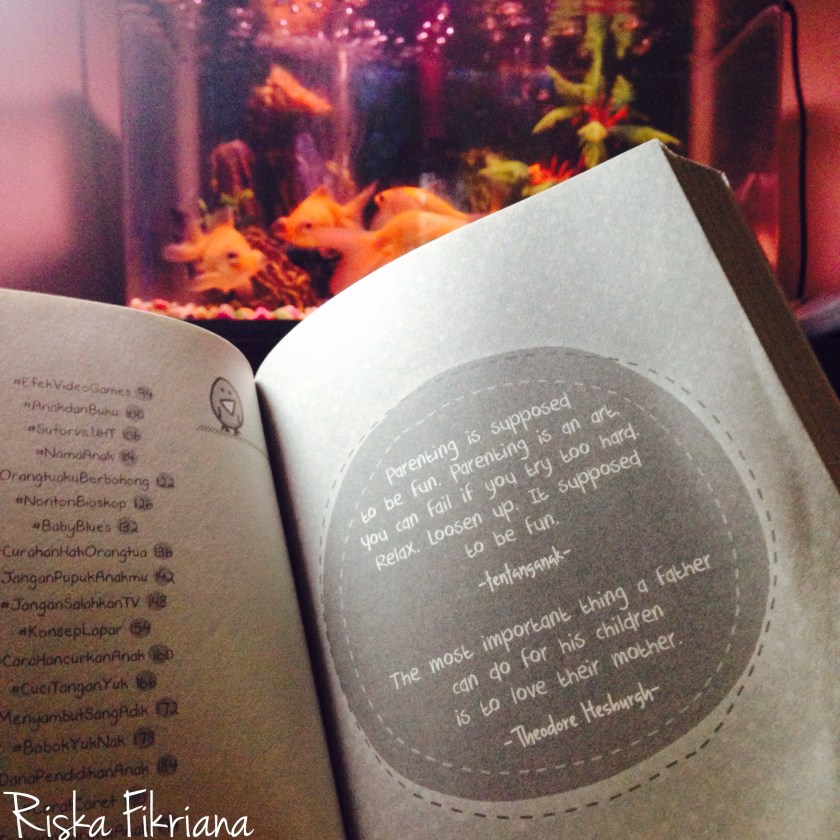 Awalnya, saya pikir buku ini berisikan segala sesuatu dari sudut pandang anak. Apapunlah. Mulai dari keinginan, cita-cita dan semuanya. Ya, saya kira ketika membaca buku ini, saya akan berada pada posisi seorang anak yang memiliki banyak keinginan, namum belum terkomunikasikan dengan orangtua. Tapi ternyata saya salah besar. Buku ini, memiliki sudut pandang orangtua, pada ayah khususnya. Tak hanya bagaimana cara mendidik dan menyayangi anak, tapi juga menyayangi istri. Ibu dari anak-anak yang telah mendedikasikan seluruh hidupnya untuk anak dan keluarga.