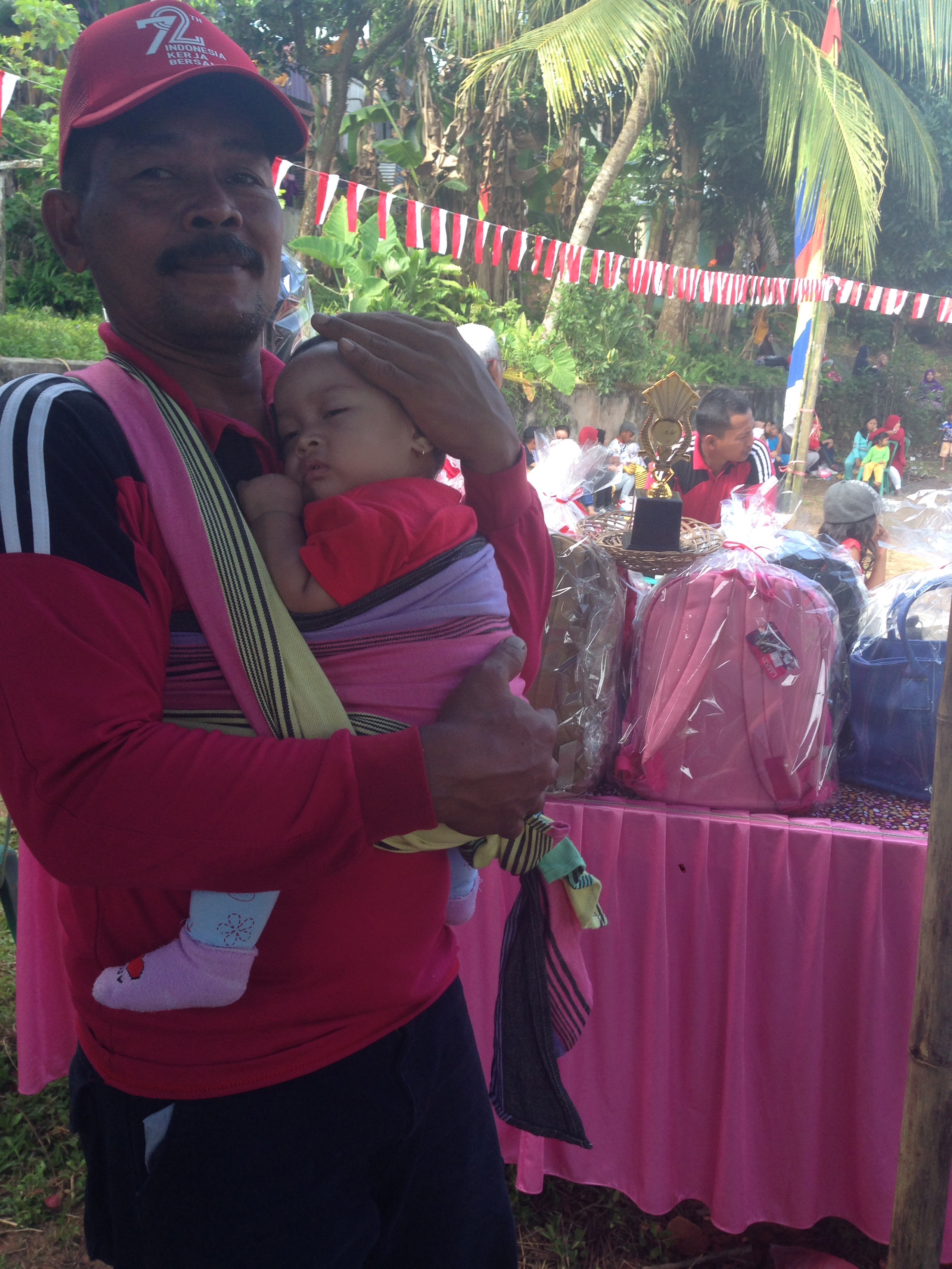 Setelah berkeliling kampung, kami pun kembali ke lapangan untuk lomba-lomba dan bagi doorprizes. Ada yang komentar gak soal posisi menggendong? Kebetulan, saat ini usia Cinta sudah 8 bulan. Jadi, tidak ada yang mempersoalkan. Kalaupun ada, tetangga sudah pada tau kalau dari 0 bulan, Cinta sudah digendong M-shape. Pernah sih ada yang menegur supaya tidak menggendong seperti itu. Tapi intonasinya lemah lembut. Jadi saya pun sedikit menjelaskan kenapa posisi M-shape itu penting. Syukurlah, meski saya tau mereka kurang sependapat, tidak ada yang mempermasalahkanya.