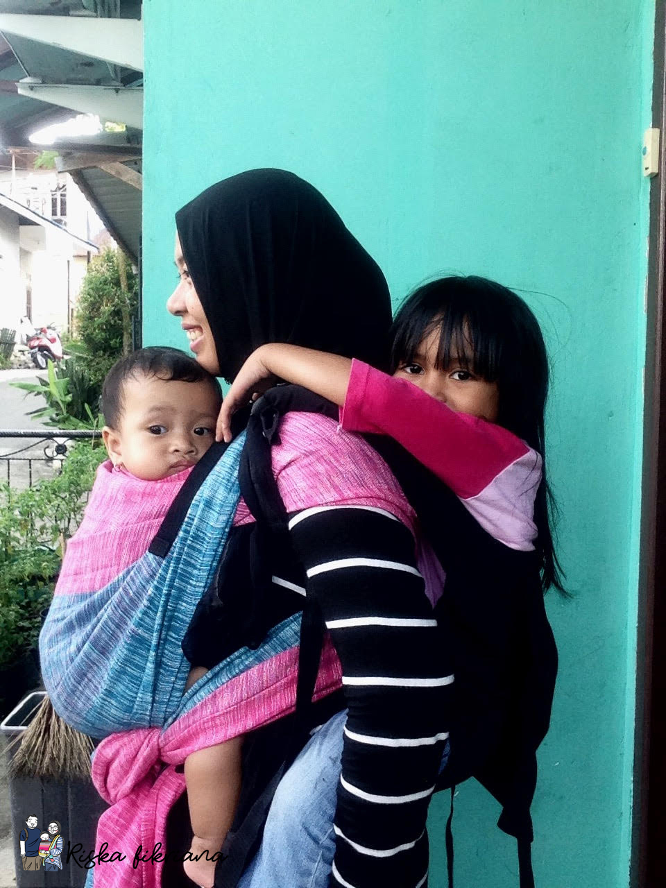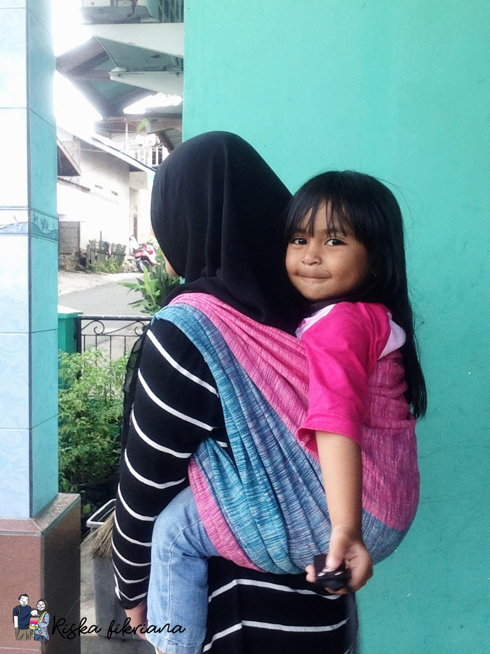 Tapi, suatu sore Cicah tiba-tiba bertanya “Mami, gak foto pake gendongan lagi?”