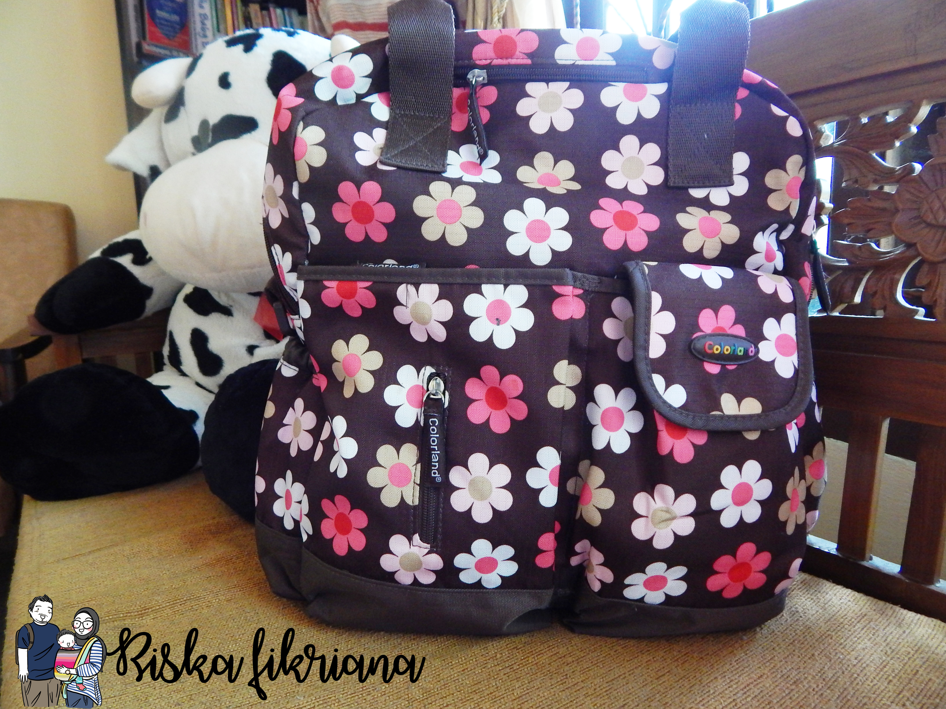 Dulu, saat Cinta masih kecil sekali Colorland adalah tas favorit saya. Cinta yang menggunakan clodi, membuat saya khawatir kalau memerlukan clodi yang banyak. Apalagi saat di bawah 6 bulan, frekuensi bab cukup sering dan teksturenya tidak padat. Seiring berjalannya waktu, Cinta sudah bisa diajak kerjasama. Setiap akan jalan, saya selalu mengingatkan untuk bab sebelum jalan atau saat sudah di rumah. Jadi hampir jarang saya membawa banyak perlengkapan seperti dulu. Di dalam tas yang saya bawa hanya ada satu clodi dan satu pasang baju ganti. Sisanya saya taruh di totebag dan diletakkan di mobil.