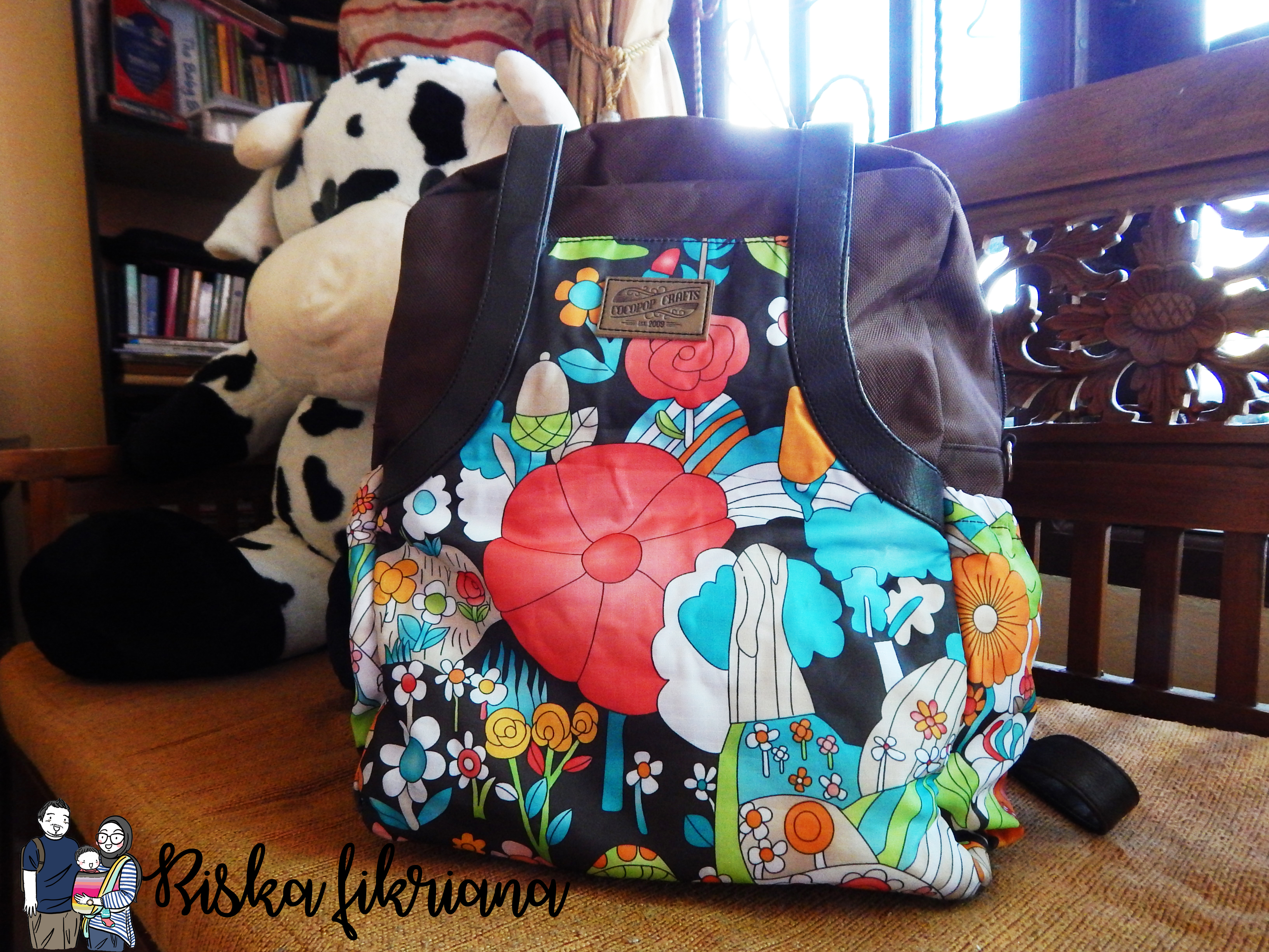 Yang saya sukai dari tas ini karena buatan dalam negeri, cocopop craft bisa langsung meluncur ke FB dan Ignya Bentuknya unik dan kualitasnya juga oke versi saya. Selain diaper bag, tas ini juga fashionable. Bisa dijadikan tas cangklong, selempang bahkan ransel. Ukurannya sedikit lebih kecil dari pada tas Colorland. Selain kantongan-kantongan, tas ini juga bisa untuk laptop lho. Karena disediakan kantongan untuk menyimpan laptop.