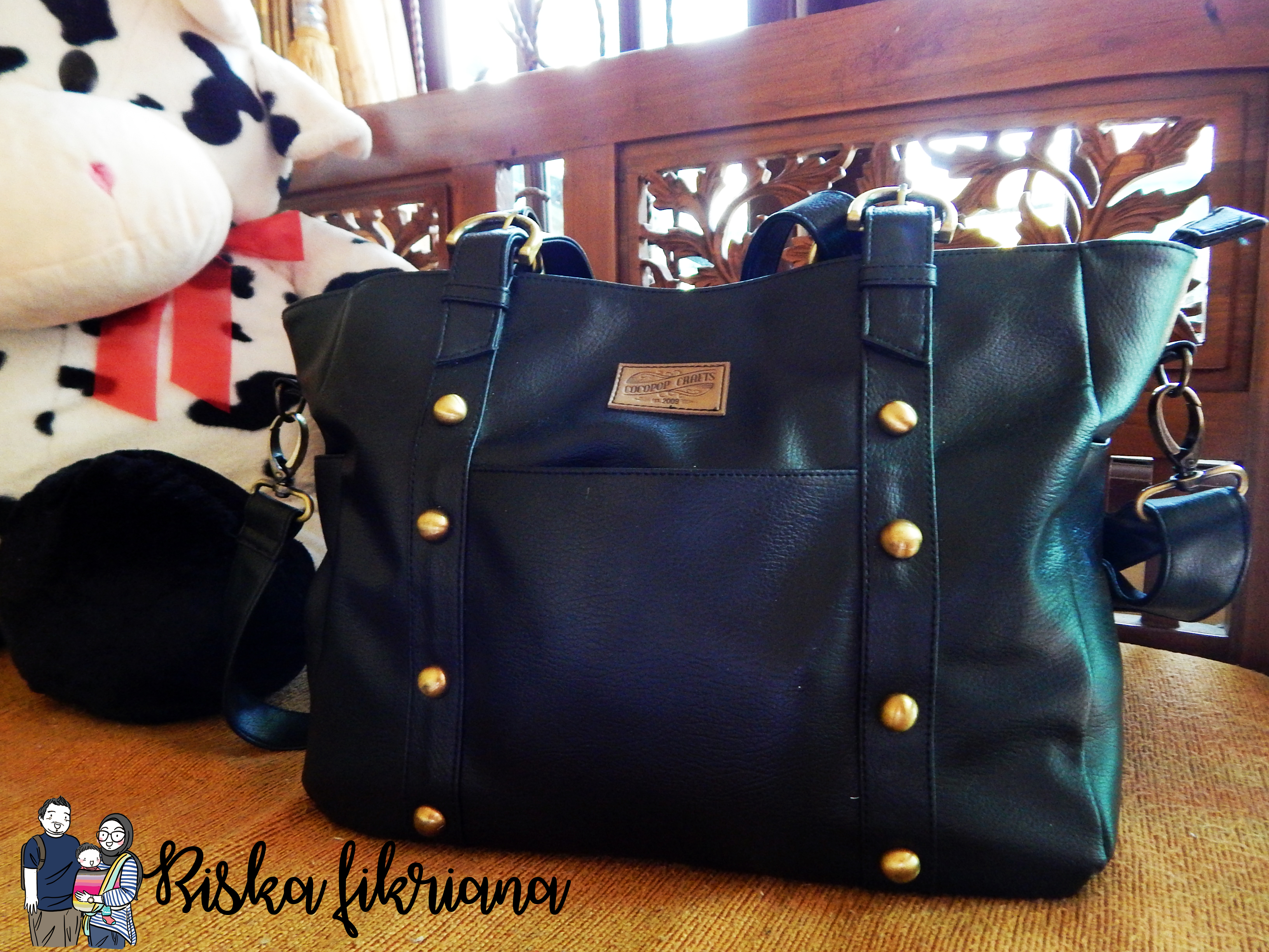 Karena dua diaper bag yang saya miliki banyak saya gunakan dalam bentuk ransel, saya kerap merasa kesulitan mengambil sesuatu. Apalagi saat perlengkapan yang saya bawa tidak banyak. Serasa makan tempat. Belum lagi, ketika saya menghadiri undangan. Dua tas lainnya tampak berlebihan menurut saya. Akhirnya saya memesan diaper bag yang lebih terlihat seperti fashion bag. Bagian dalamnya tetap banyak kantongan. Mengambil sesuatu di dalam tas juga jauh lebih mudah.