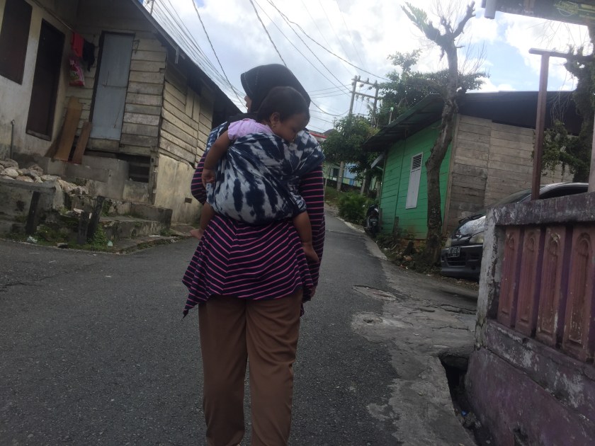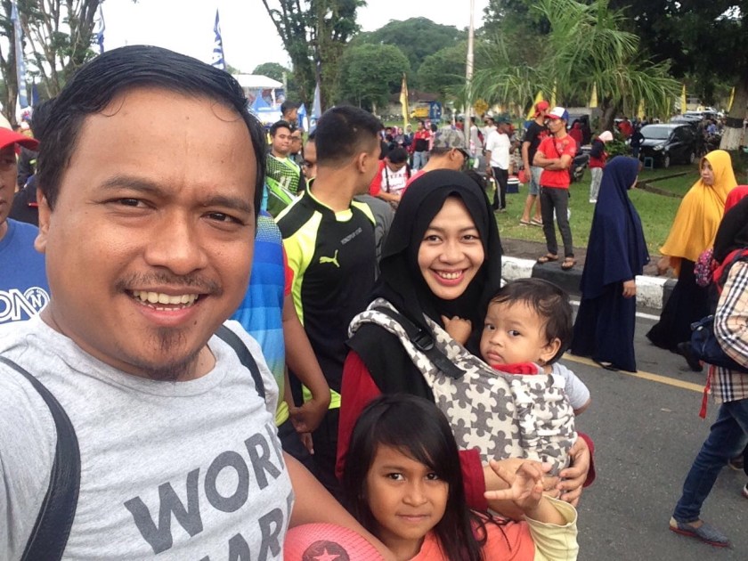 Kok jalan-jalannya sambil gendong? Bukannya Cinta sudah bisa jalan? Awalnya saya berjalan dengan Cinta tanpa gendongan. Tapi sipa sangka, kalau setiap melewati warung Cinta minta mampir. Bakat jajan mamak diturunin ke Cinta. Jadi, jalan-jalan berikutnya sengaja Cinta di gendong. Kecuali di Lapangan merdeka, setelah jalan-jalan, Cinta akan diturunkan di rumput, agar bisa bermain.