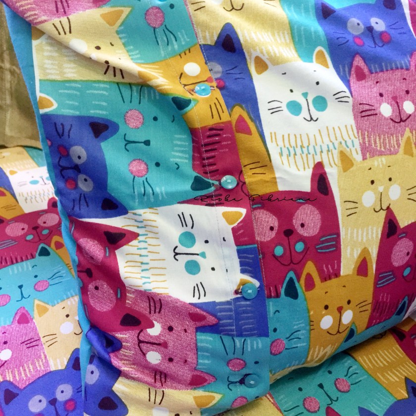 Kain yang ditawarkanpun memiliki kualitas yang baik. Sehingga tetap adem. Keluar dari plastik aja udah adem, apalagi setelah di cuci. Motif yang saya pilih merupakan kombinasi kesukaan suami dan anak. Suami suka biru, dan Cinta lagi suka kucing. Dan motif ini pun mengingatkan saya pada beberapa teka-teki yang pernah saya lihat di sosial media. Manakah gambar beruang?
