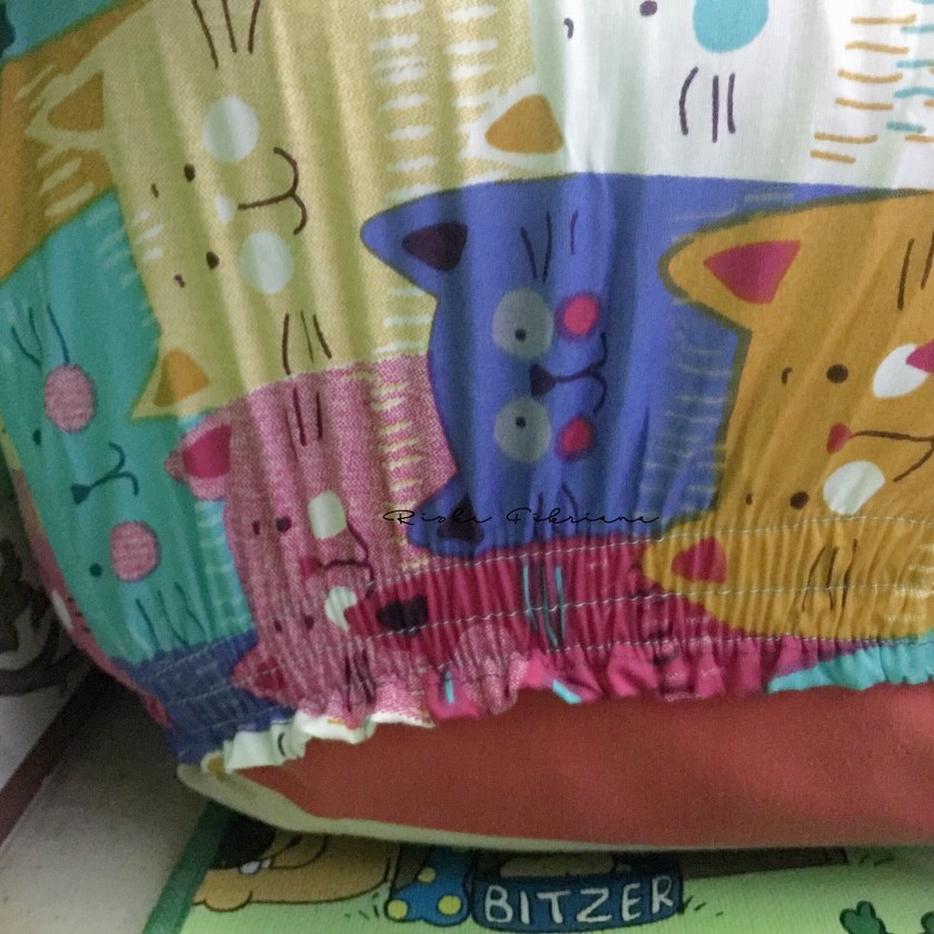 Merasa butuh sprei baru, saya pun memutuskan untuk mencari sprei yang nyaman dengan motif yang ceria. Beruntunglah, salahsatu teman di komunitas ada yang punya usaha sprei handmade. Yes, di jahit sendiri. Namanya mbak Flo, bisa intip instagramnya di sini. Setelah berkutat cukup lama dengan pilihan motif (bingung milih saking banyaknya), saya memesan satu set sprei, sarug bantal cinta dan cover matras untuk ibu saya.