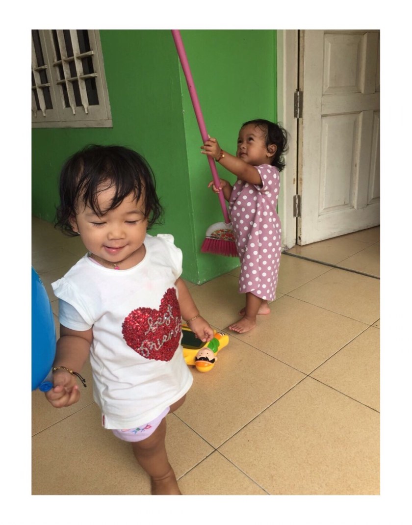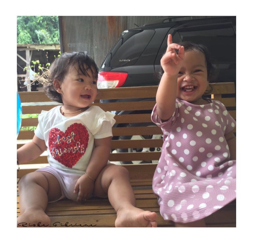 Nah, saat Lebaran lalu, Cinta tinggal di rumah utinya bersama sepupu yang usianya hanya beda dua bulan, Kesya namanya. Sejak dulu, Cinta memang selalu di sounding kalau Kesya adalah adiknya. Harus salig menyayangi dan mau berbagi.