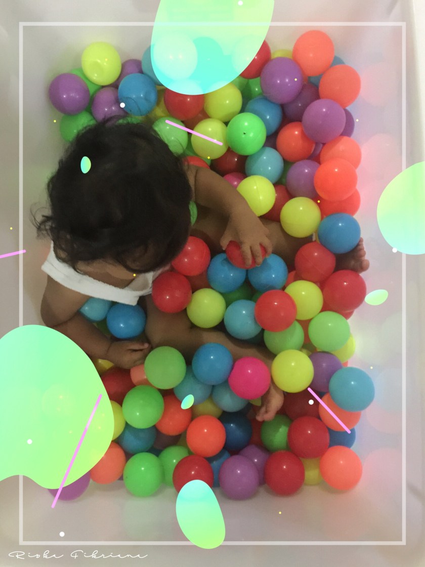 Waktu Cinta berusia 6 bulan, saya pernah membelikan kolam plastik. Bukan untuk diisi air. Tapi untuk diisi bola-bola. Maksud hati, saat memasak, Cinta bisa bermain mandi bola sejenak. Sayangnya, Cinta dan mama seperti lem amplop. Nempel terus 🤣
