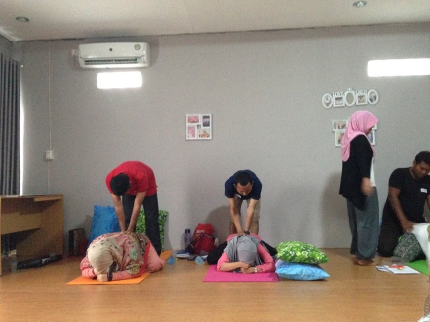 Oh iya, jika membayangkan kelas gentlebirth ini seperti seminar, maka salah besar. Kelas ini dilakukan dengan santai dan penuh kebahagiaan. Karena ada saja tingkah lucu dari para peserta. Praktik juga banyak dilakukan, jadi bukan hanya teori.