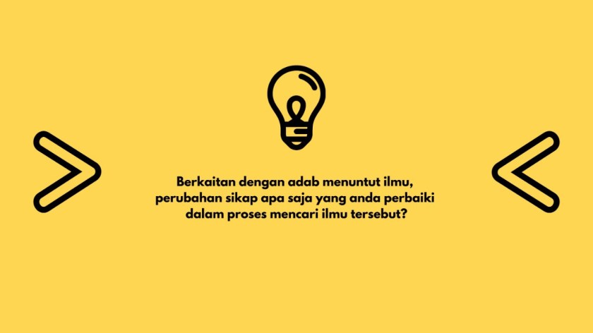 Perubahan sikap apa hang harus saya perbaiki dalam proses mencari ilmu? Aktif di beberapa komunitas dan memiliki teman-teman yang sudah belajar lebih dulu terkadang memberikan saya gambaran apa yang akan dilakukan. Namun yang harus saya lakukan selama kelas berlangsung adalah mengosongkan dulu informasi yang sudah saya terima sebelumnya. Saya harus menyimak dan mempelajari materi yang baru saya dapatkan. Sehingga saya tidak menjadi sok tahu atau merasa lebih pandai.