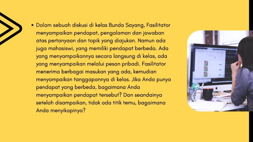1. Menyampaikan pendapat sesuai dengan topik yang sedang dibahas serta mengutarakannya dengan sesopan mungkin tanpa menyinggung atau menyakiti hati yang lain.