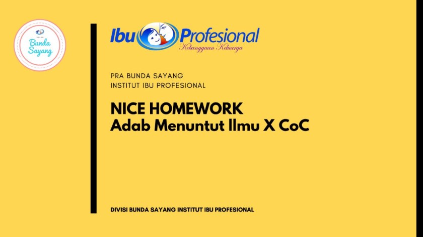 Perkuliahan Bunda Sayang Batch 5 dimulai dengan Pra Bunsay. Materi pertama adalah Adab x CoC.