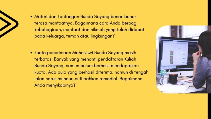 3. Harus memiliki niat yang kuat untuk menyelesaikan kelas bunsay. Serta dukungan dari suami dan juga keluarga lainnya.nkarwna itu sangat mempengaruhi diri dalam menjalankan perkuliahan