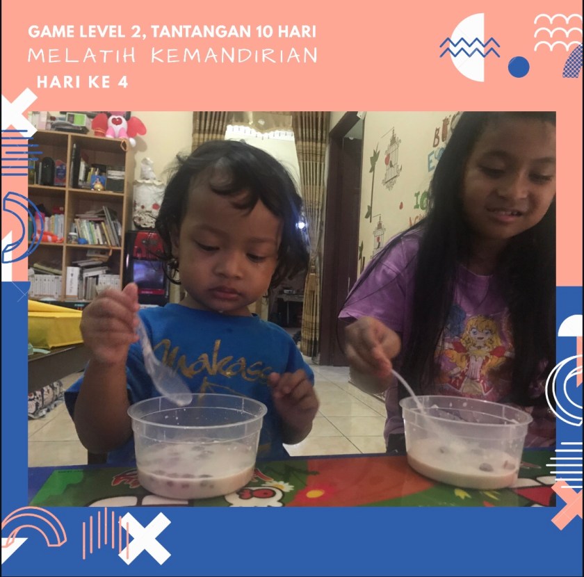 Mencontohkan gaya sarapan kakak sepupunyaa, Alhamdulillah Cinta menghabiskan sarapannya sendiri. Yeay. 🎉🎉
