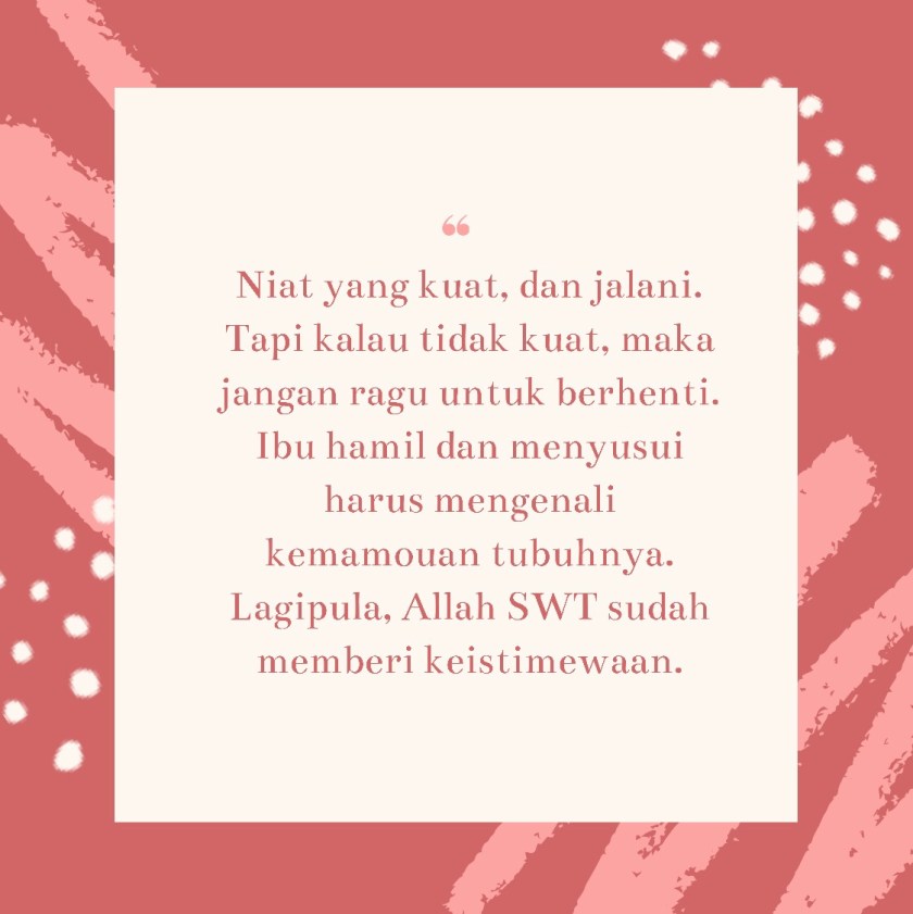 Sama halnya dengan menyusui di bulan-bulan lain, menyusui di bulan puasa lebih membutuhkan niat, persiapan dan dukungan dari lingkungan keluarga terdekat.