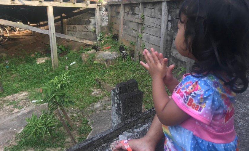 Meski pagi hari sudah jalan pagi, ternyata Cinta masih ingin belajar sambil berjalan-jalan keliling kampung. Apa yang dicari? Rainbow alias ayam jantan dan kucing kecil.