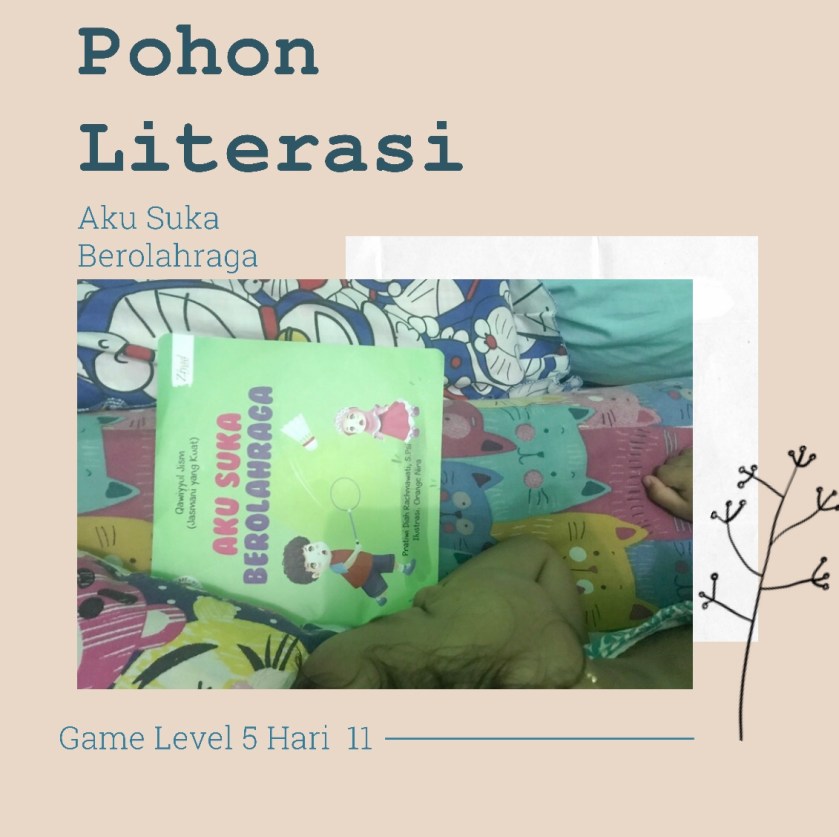 Selepas Magrib, saat adiknya tertidur, maka sayapun mengajak Cinta untuk membaca buku. Karena tadi siang dia beraktivitas fisik melalui beberapa perlombaan, maka sayapun sengaja membacakan buku Aku Suka Berolahraga.