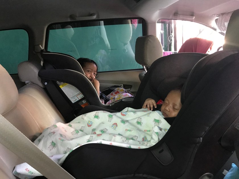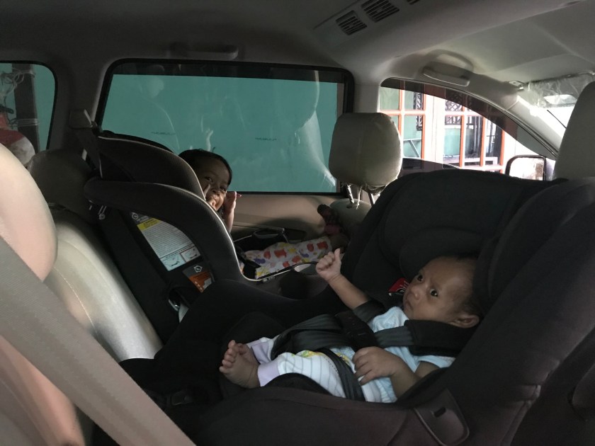 Saya melupakan kemungkinan-kemungkinan gagalnya menggunakan carseat. Yaitu anak-anak kakak saya yang suka ikut jalan dan tidak menggunakan carseat. Keponakan saya yang sering ikut jalan ada dua orang, usia 6 tahun dan 9 tahun. Adiknya lagi usia 4 tahun, meski tidak sering, tapi sesekali ikut bersama ibunya. Jadilah, saya seperti mengajak rombongan sirkus. 🤧