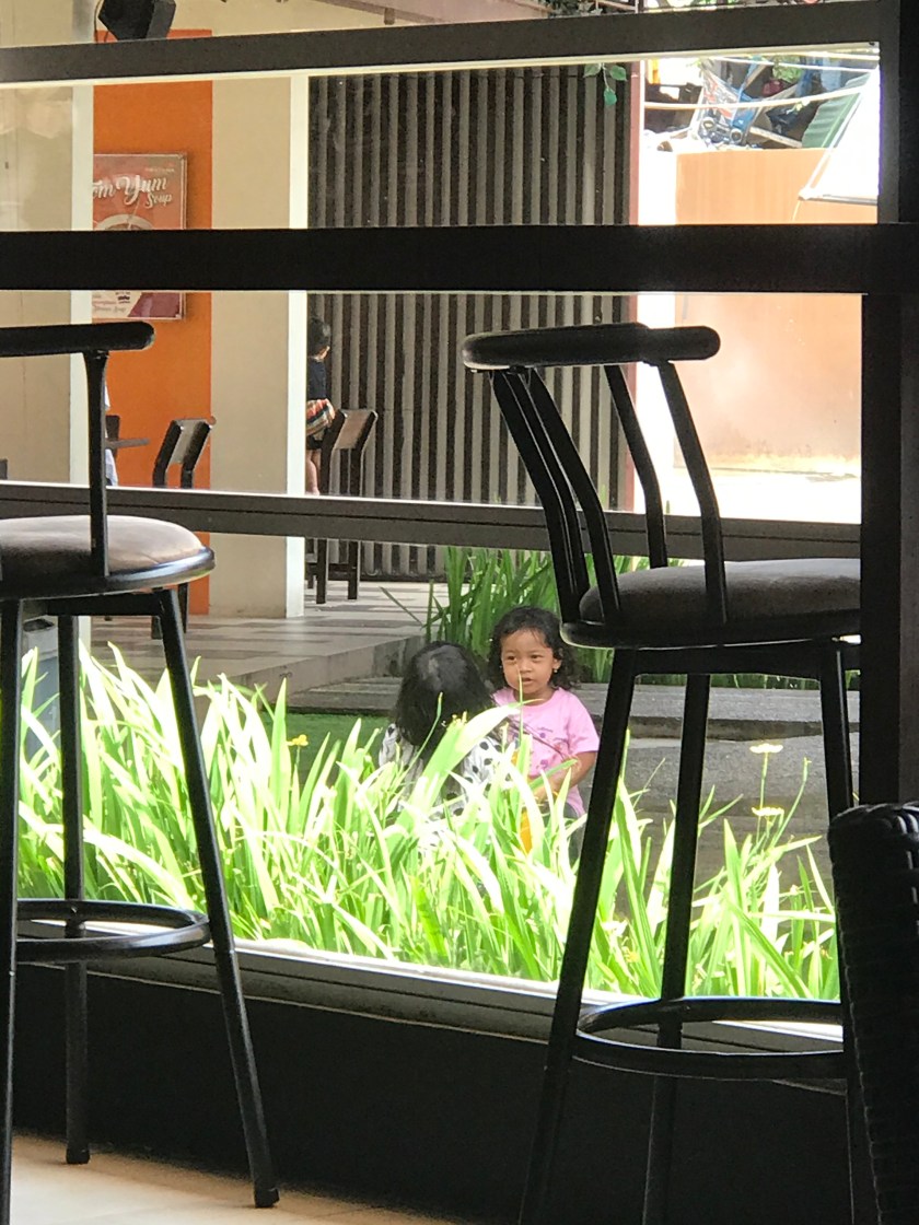 Sambil makan, saya memperhatikan Cinta. Dengan sabar, Cinta mengantri saat menuruti perosotan. “Namaku Cinta, namamu siapa?” sayup-sayup saya dengar perkataan Cinta.