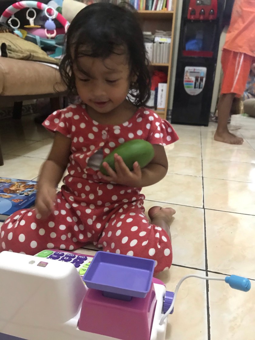 Kali ini, buah mangga menjadi perantara permainan peran kami. Salahsatu permainan yang selalu Cinta lakukan. Setiap hari. Hanya temanya saja yang selalu berubah-ubah. ❤️