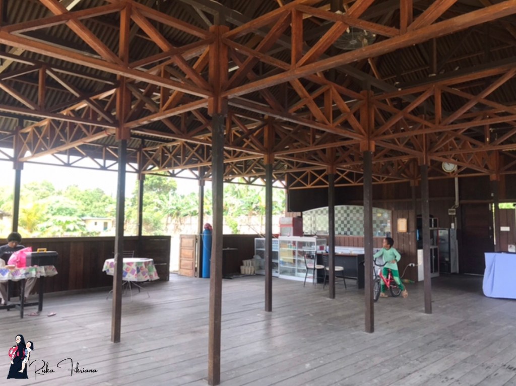 Untuk menuju kolam pemancingan, kita bisa melewati rumah makan ini atau bagian sampingnya. Rumah makan ini, berfungsi juga sebagai gazebo. Jika ingin menggunakan meja di dalam atau alas tikar, kita bisa menyewanya dengan nominal Rp 50.000,-. Jika tidak, kita bisa menggunakan meja-meja kecil dipinggir kolam pemancingan.