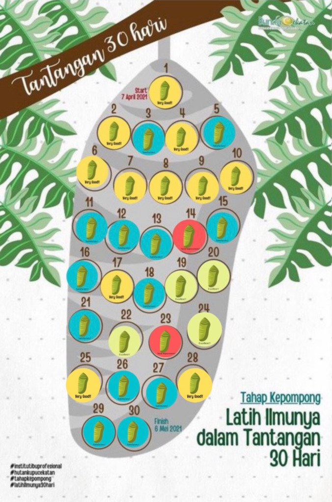 Hari ini adalah hari terakhir tantangan di tahap kepompong. Namun, saya tidak merasa begitu. Saya bertekad setiap hari akan tetap melaksanakan tantangan-tantangan yang sebelumnya saya lakukan.