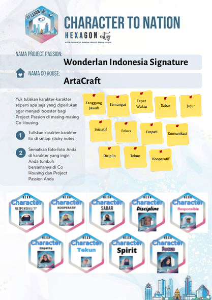 Sampailah saya dan hexagonia lain di zona karakter. Di zona ini, kami diajak untuk menentukan akan bertumbuh dengan karakter apakah di kota ini. Saya merasa semangat, berusaha tepat waktu, tekun dan bertanggung jawab.