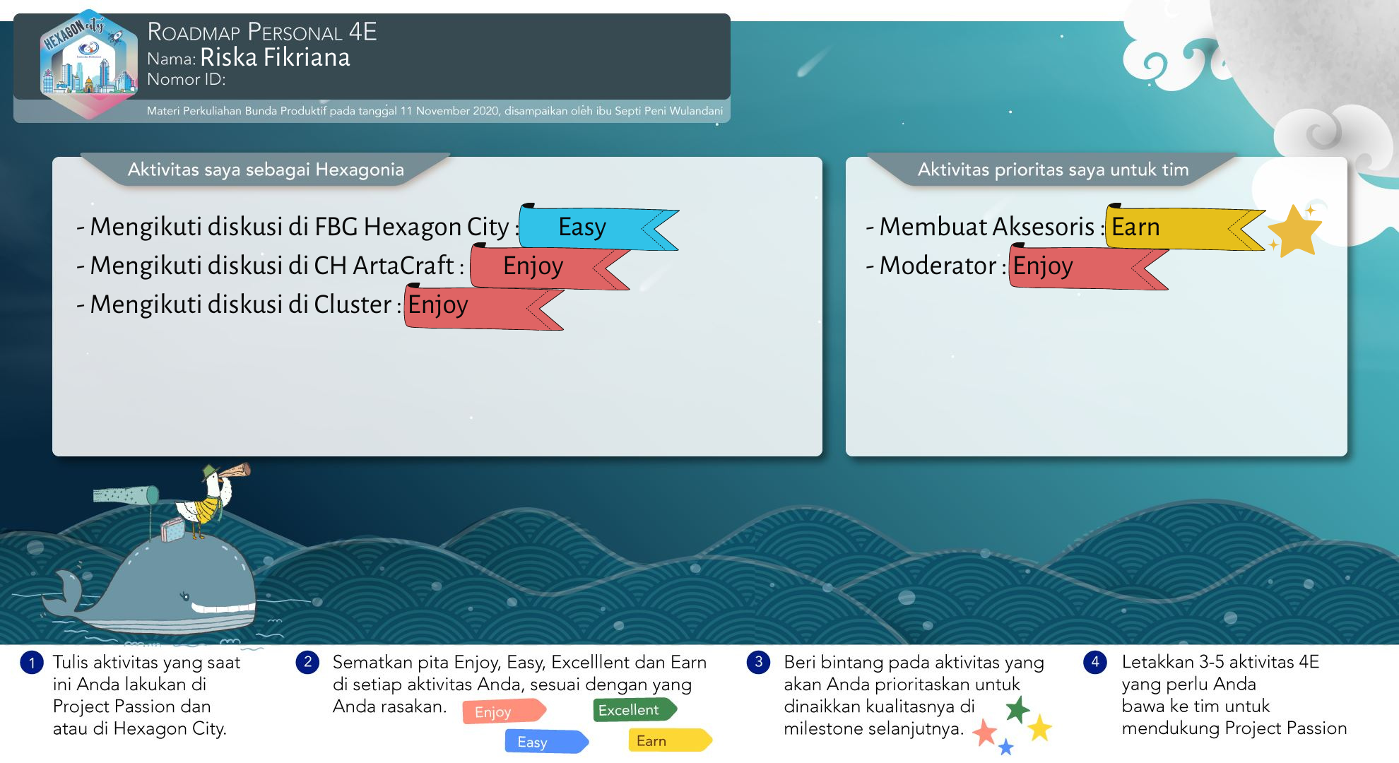 Di zona 4E ini, saya mencoba memahami lagi apa itu 4E. Setelah memahami materi dari ibu Septi, tampaknya saya berada diidentity based habit.