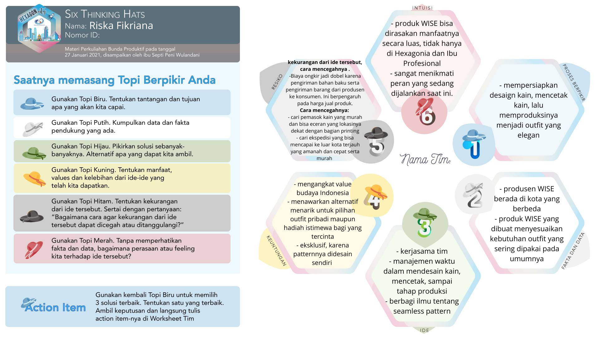 Jujur saja, saat melihat materi dengan judul Saatnya Memasang Topi Berpikir, yang aku ingat adalah acara kartun kesukaan anak-anak, Blue Clues. Meski Josh, pemerannya menggunakan kursi berpikir, bukan topi.