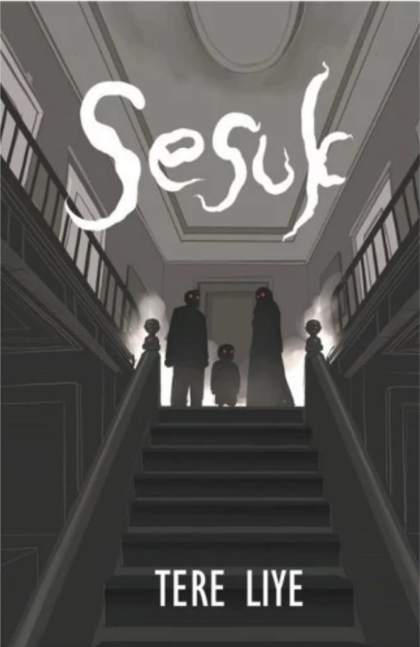Sesuk? Apakah ini bahasa jawa yang artinya besok? Mungkin saja. Saat melihat covernya di google playbook, jujur saja aku agak ngeri. Kenapa? Karena novel yang katanya bergenre horor ini menggambarkan orangtua dan anam kecil yang berdiri di atas tangga dengan mata berwarna merah.