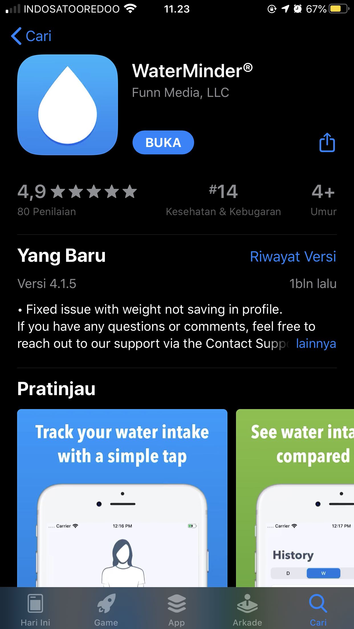 Apalagi, banyak aplikasi yang lumayan bermanfaat. Hampir sebulan ini, saya menggunakan salahsatu aplikasi yang menurut saya sangat membantu. Namanya Water Minder.